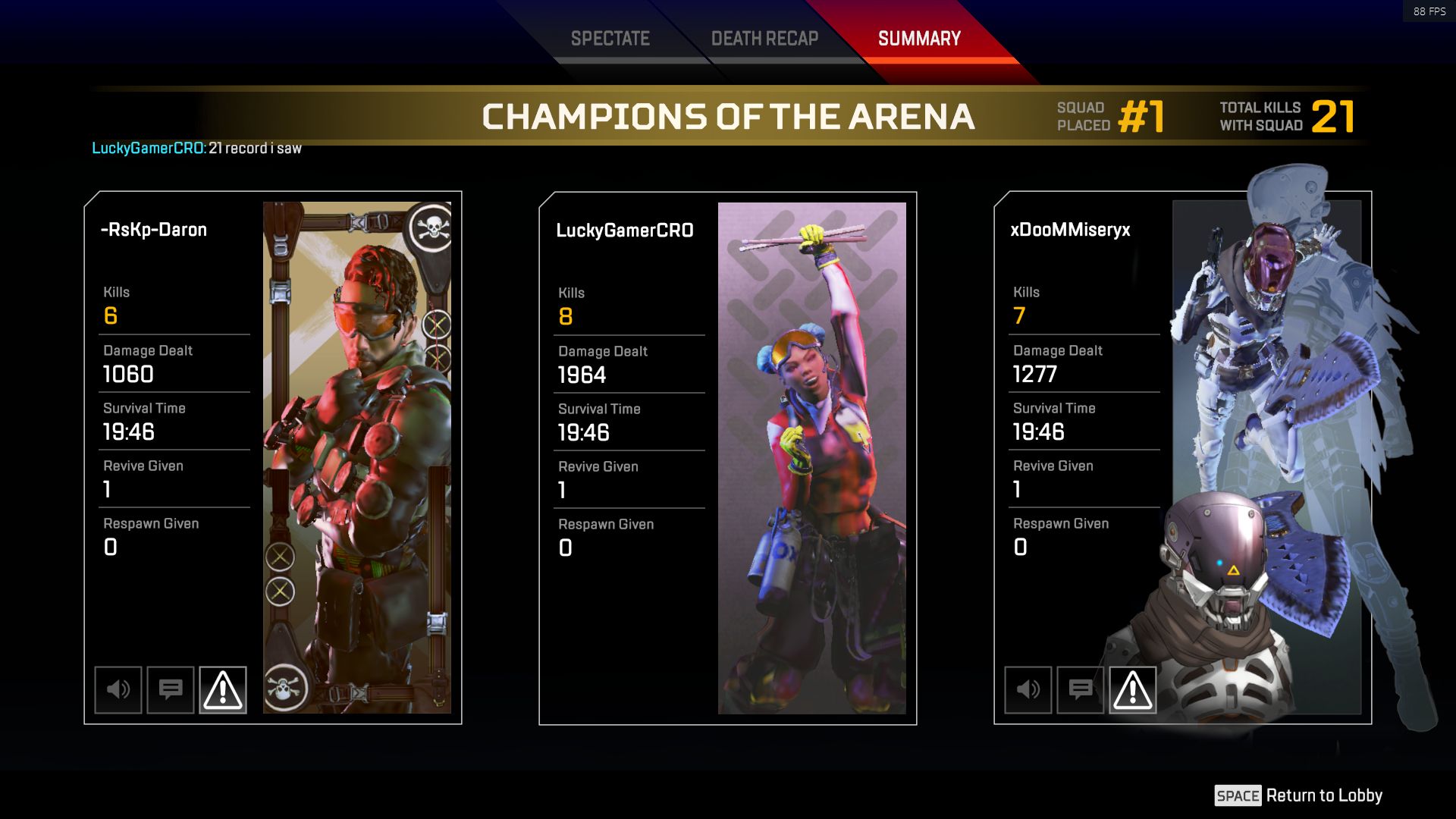 Anyway, I am realist. How it looks when I am champion in Apex, and when I kill 2 people with only charge rifle at start, later one more, and collect massive damage, visible here. Too bad I didnt filmed that, but my games usually last over 20 mins ther, cause i am 75 % in top 10 at least. Maybe, you would learn something.