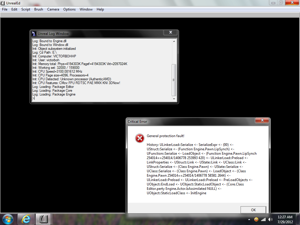 heres another shot of that error when i open unreal so you can see that second window on the left better check it out :mofu: