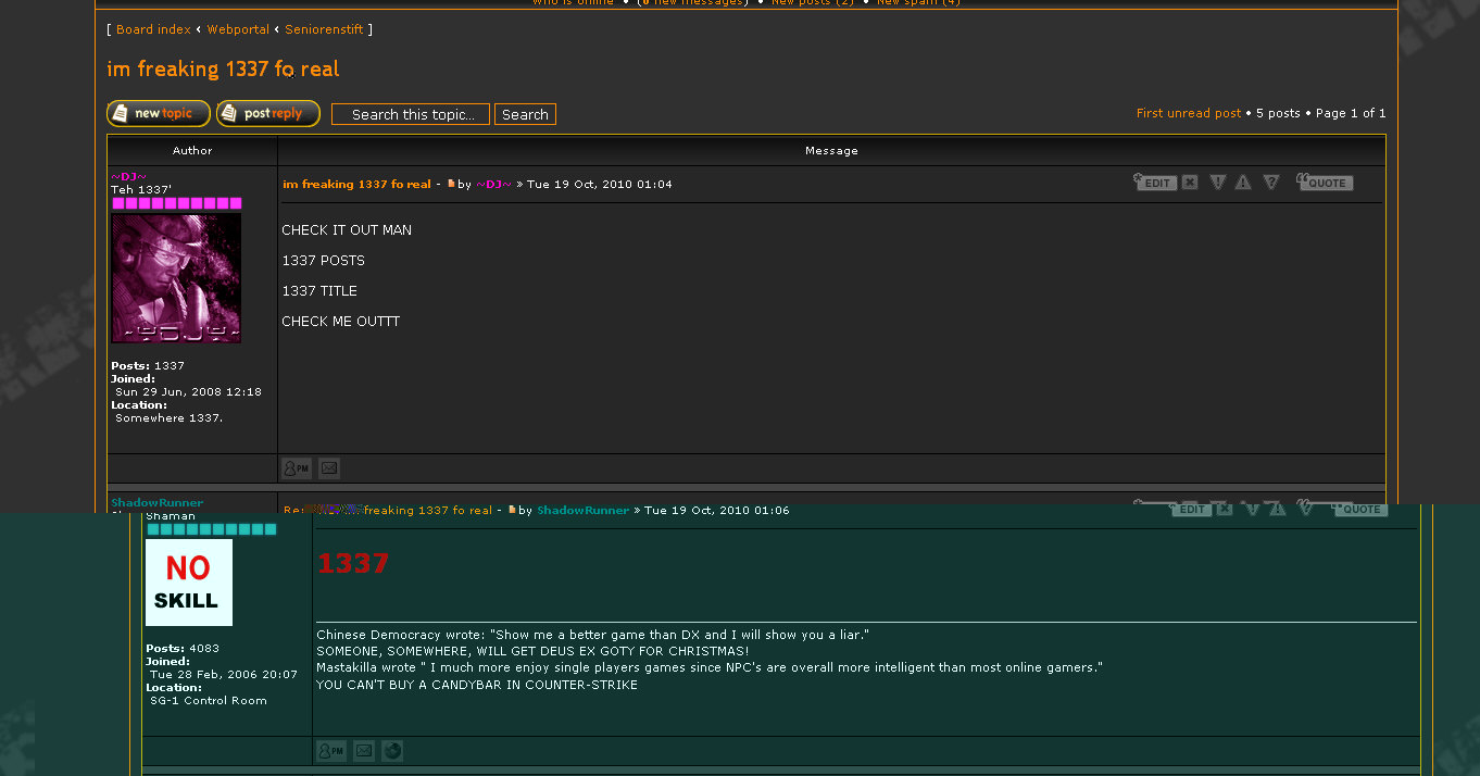 ~[FGS]SaSQuATcH~ wrote:Oh cool, DJ's post count is 1337 which means he will shut up for a while now :(