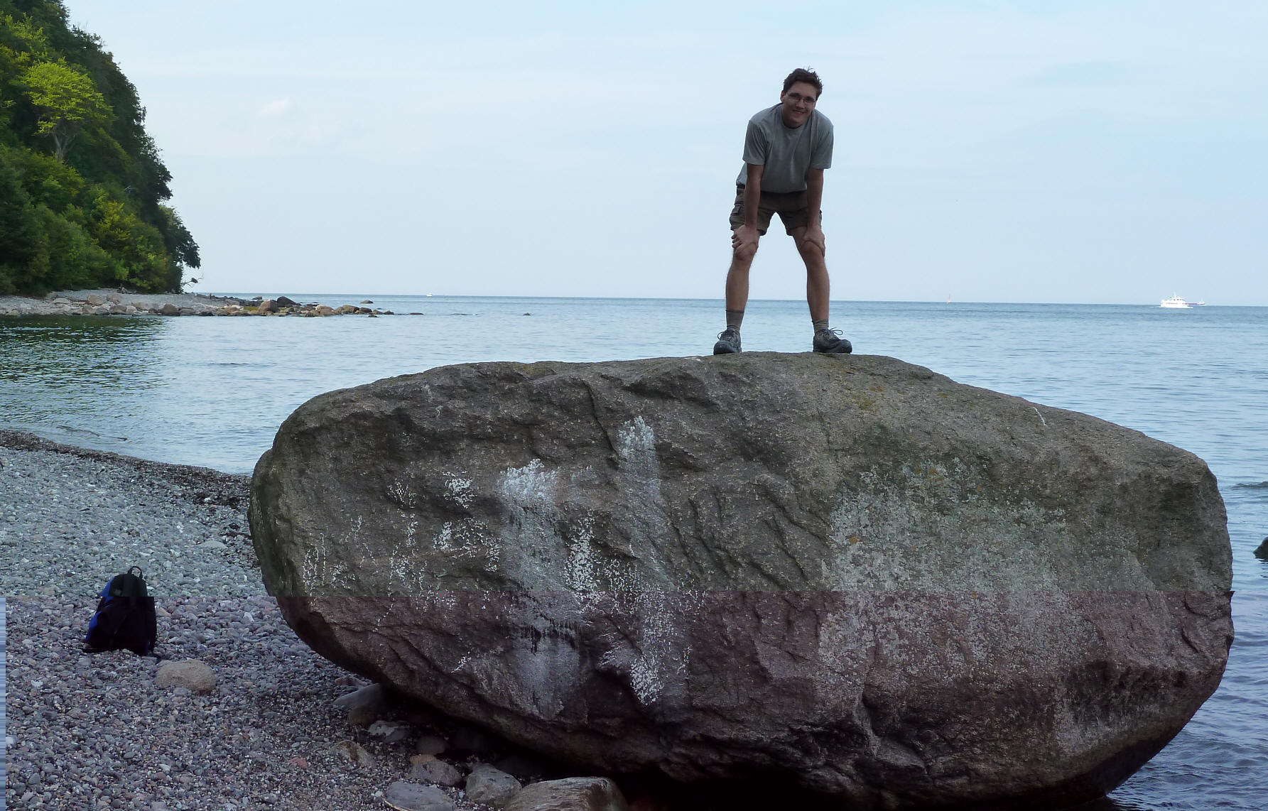 That's me on holiday on a boulder at the chalk cliffs on the island of Rügen, Germany.